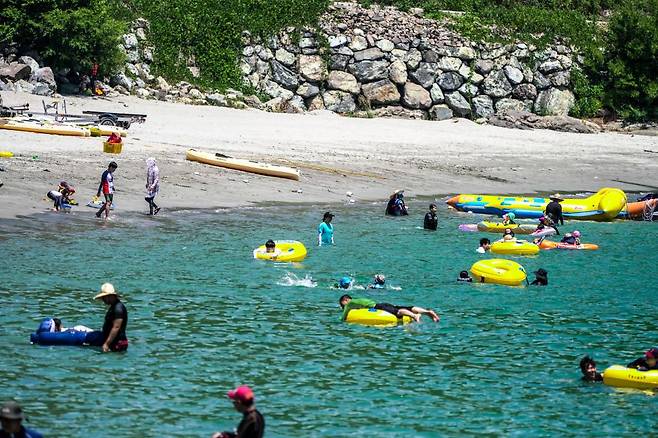 앞에는 밤섬, 띠섬 같은 작은 섬들이 파도를 막아줘 항상 잔잔한 수심을 유지하죠. 이러한 조건 덕분에 여름철 스노클링하기에도 제격인데요.
