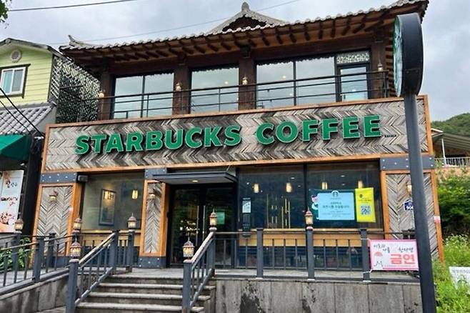 '스타벅스 문경새재점'은 경북 문경에 자리 잡은 매장입니다. 한옥 디자인의 외관과 내부 인테리어 덕분에 아름다운 매장으로 손꼽히는 곳입니다. 문경새재점은 스타벅스 직원들이 뽑은 국내 가장 아름다운 스타벅스 매장 5위에 오르기도 했죠.