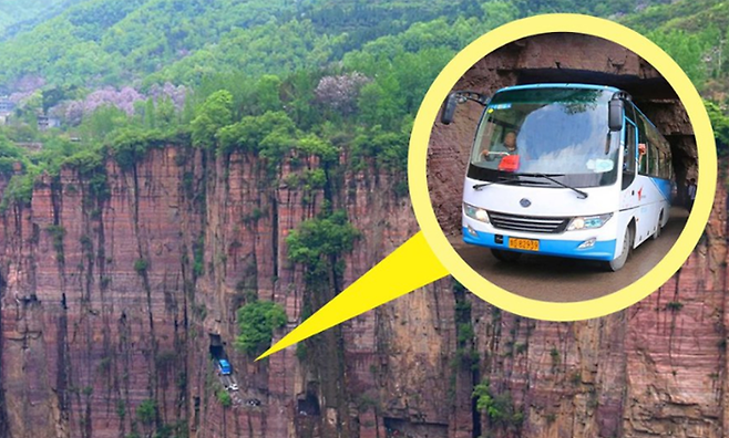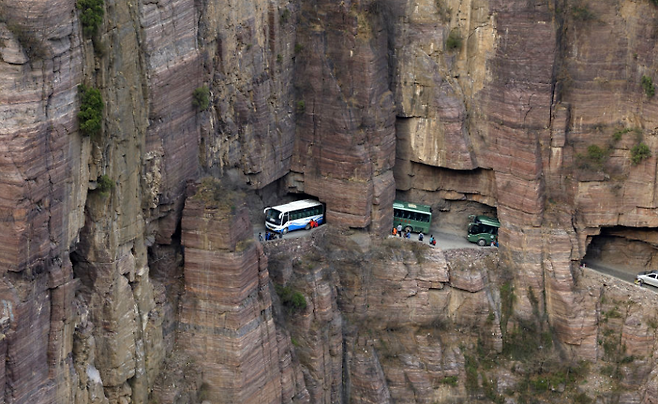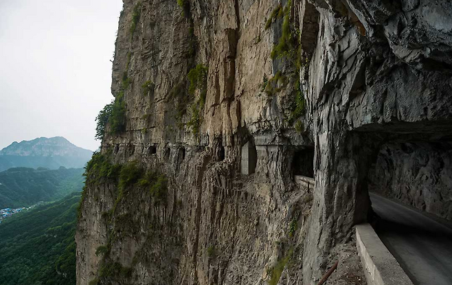 ▽중국 허난성 태행산 구오리앙 터널은 순수하게 사람의 손으로 만들어진 길입니다. 타이항 산맥의 오지마을인 구오리앙 주민들은 이 터널이 생기기 전까지 절벽을 깎아 만든 좁은 길로만 외부를 드나들었습니다.