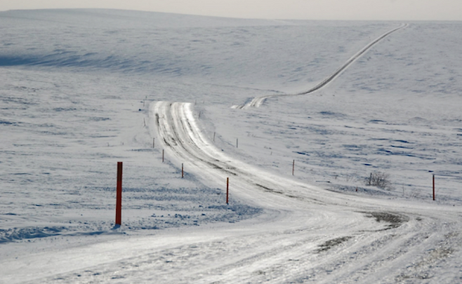 ▽알래스카에 있는 달튼 하이웨이는 페어뱅크스의 북쪽에 있는 앨리엇 고속도로에서 시작하여 북극해의 유전과 연결되는 666km길이의 도로입니다. 미국에서 가장 고립된 도로 중 하나인 달튼 하이웨이는 도로자체가 대부분 자갈로 되어있으며 겨울에는 운전하기 굉장히 까다로운 얼음도로로 바뀝니다.