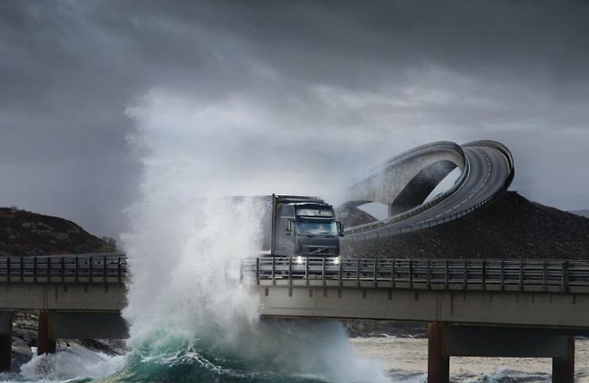 ▽노르웨이 ‘애틀란틱 로드’는 거센 파도가 휘몰아치는 해안가에 인접한 도로입니다. 몰드와 크리스챤센 근방 다섯 개 섬을 연결하는 8킬로미터 길이의 도로로서, 날카로운 커브와 멋진 자연환경때문에 각종 매거진들이 선정하는 세계에서 가장 아름다운 도로에 자주 꼽히는곳입니다.