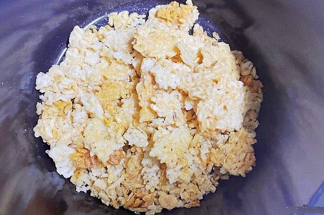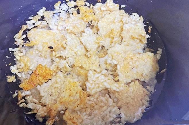 다음날 확인해 보니 딱딱한 누룽지가 부드럽게 풀려 있어요.