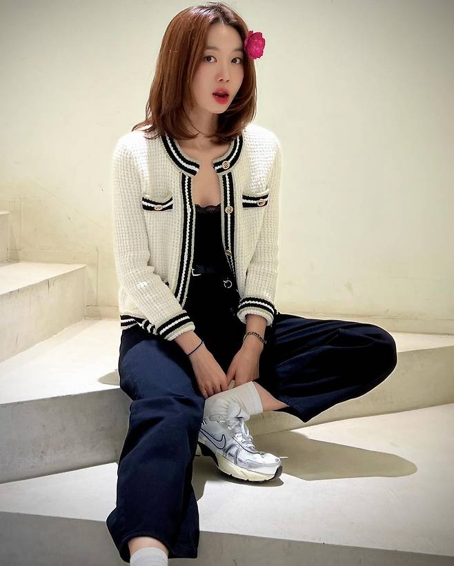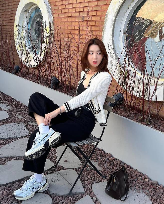 사진 속 장희진은 블랙 탑을 이너로 입고 화이트 와플 가디건과 블랙 팬츠를 입고 운도화를 신어 캐주얼한 데일리룩을 선보였다.