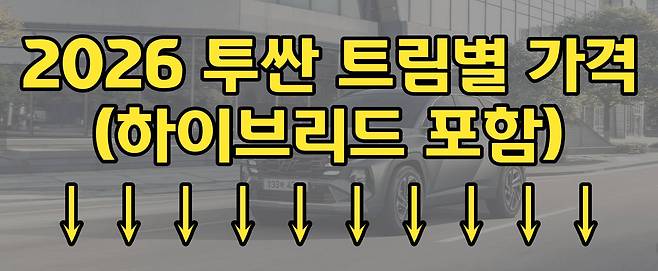2026 투싼의 가격은 가솔린 터보 모델이 약 2,800만 원대부터, 하이브리드 모델은 약 3,200만 원대부터 시작된다(개별소비세 환원 기준).