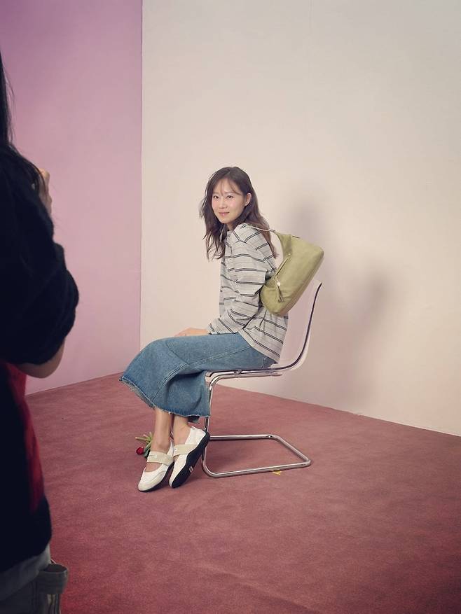상의의 그레이 톤과 하의의 데님 소재가 어우러져 편안한 분위기를 자아내며, 무심한 듯 여유로운 실루엣이 공효진만의 독보적인 아우라를 잘 보여줍니다.