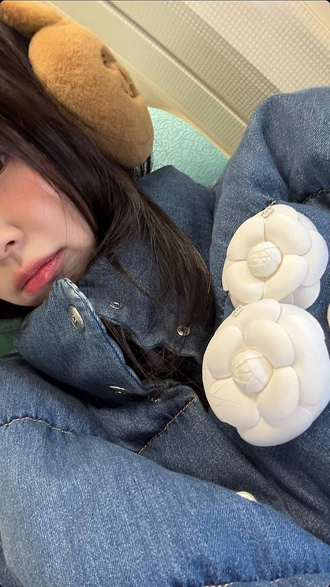 제니는 블루 데님 패딩을 착용해 스타일리시하고 포근한 패션을 선보였습니다.