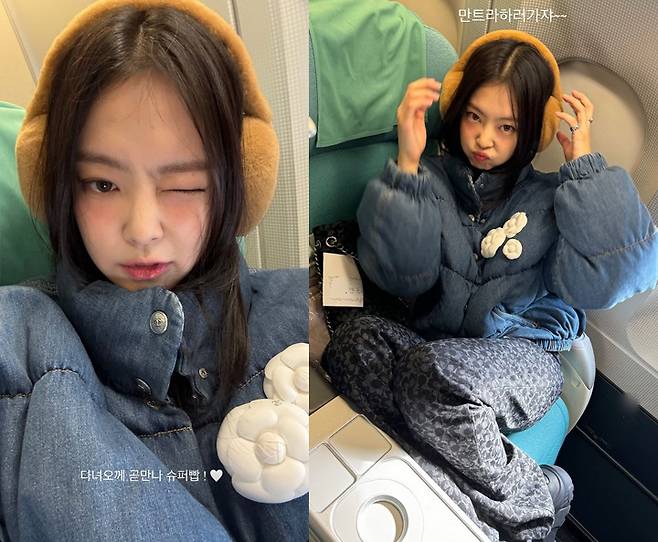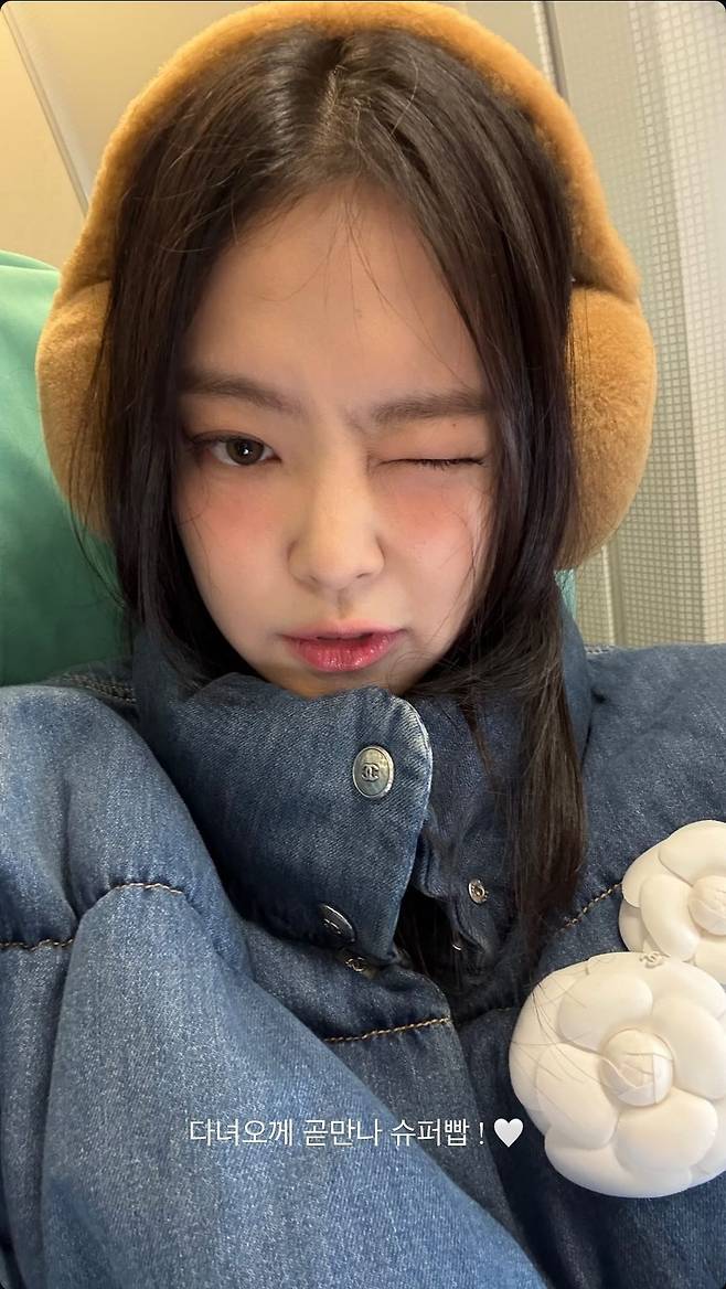 특히 제니는 브라운 귀마개와 블랙 가죽 버킷백을 활용해 고급스럽고 세련된 아이템을 뽐냈습니다.