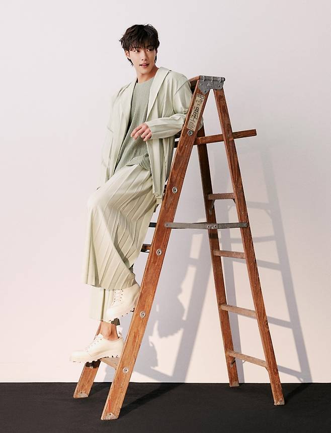 배우 우도환이 산뜻한 컬러의 스프링 시티룩을 공개했다.