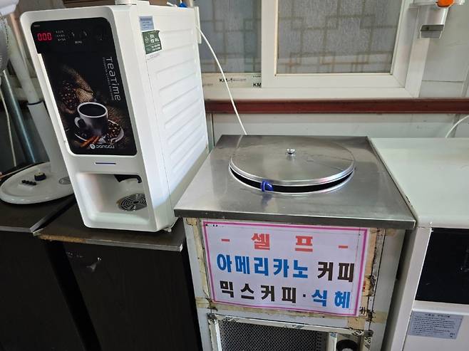 다행히 식당 입구가 북적이진 않는다. 예닐곱 분이 의자에 앉아 있다. 카운터 대기순 적는 노트를 보니 우리 앞에 다섯팀이 대기 중이다. 이 정도면 무난했다. 대기자들을 위한 룸도 별도로 있다. 카운터 옆 입구엘 보니 뻥튀기와 누룽지 말린 과자, 팝콘이 쌓여 있다. 대기하면서 심심하니 사먹으라는 거다. 하나당 3~5천원 정도 했다. 우린 팝콘 두 통을 구입했다. 카드는 안 받고 무조건 현금으로 구매해야 한다.