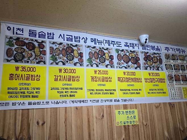 플랜 B로 생각해 둔 식당으로 다시 행선지를 바꿨다. 이천에서 맛있게 먹었던 몇 집이 있었는데 거길 가기엔 너무 멀고 근처 쌀밥집 중에서 괜찮아 보이는 곳을 내비에 찍고 무작정 향했다. 어딜 가나 맛있을 거란 생각에서다. 차로 5분 정도 거리에 도착했다. 간판 이름은 이천 돌솥밥 시골밥상이다. 주차장이 20~30대는 댈 정도로 널찍한 걸 보니 이 곳도 꽤나 유명한 곳인가보다.
