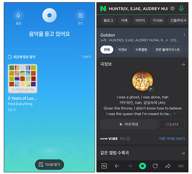 네이버 노래 찾기 | 음원 들려주기, 가사 검색
