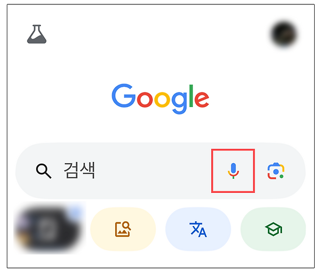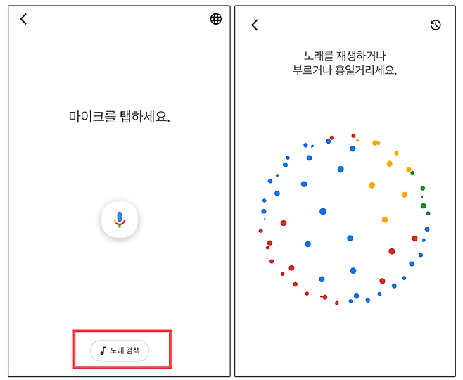 구글 앱 첫 화면에서 검색 버튼에 있는 '마이크' 아이콘을 터치해보자. 그럼 바로 노래 검색 기능이 실행된다.