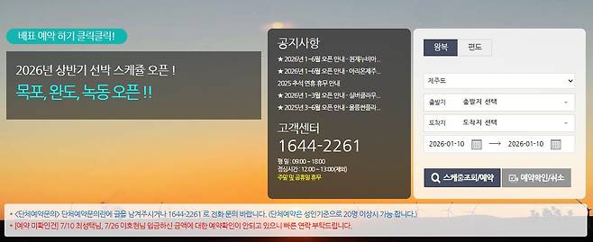 ๊ธฐ์ ์ ํ ์ ๊ฒฐํญ ๊ฐ๋ฅ์ฑ: ๋ฐฐํธ์ ๊ธฐ์ ์ํฉ์ ๋งค์ฐ ๋ฏผ๊ฐํฉ๋๋ค. ๋ ์จ๊ฐ ์ข์ง ์์ ๊ฒฝ์ฐ ์๊ณ ์์ด ๊ฒฐํญ๋๊ฑฐ๋ ์ดํญ ์ผ์ ์ด ๋ณ๊ฒฝ๋ ์ ์์ต๋๋ค. ์ถ๋ฐ ์ ๋ฐ๋์ ์ ์ฌ ํํ์ด์ง ๋๋ ๊ณ ๊ฐ์ผํฐ๋ฅผ ํตํด ์ดํญ ์ ๋ณด๋ฅผ ํ์ธํ์ธ์.