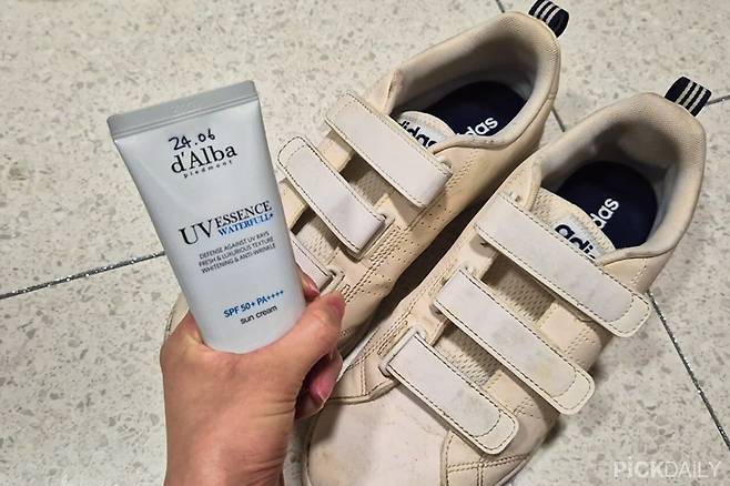 흰 운동화는 자주 신으면 밑창 옆부분이 금세 시커멓게 된다. 이럴 때는 선크림을 면봉이나 휴지에 묻혀 오염된 부분을 문질러보자. 선크림 속 유분 성분이 묵은 때를 녹여주기 때문에 힘 들이지 않고도 오염을 지울 수 있도록 도와준다.