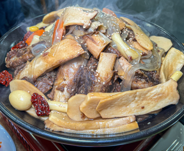 오징어, 새우, 관자, 꽃게, 미더덕 등 해산물과 야들야들한 소갈비가 듬뿍 들어간 푸짐한 찜요리예요. 당면, 떡, 메추리알까지 골라먹는 재미도 가득! 진한 국물과 감칠맛이 어우러져 해장 겸 식사로 딱 좋아요.