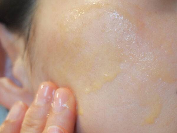 손바닥에 꿀 한 방울(또는 반 작은 술)만 덜어 얼굴 전체에 얇게 펴 바릅니다.