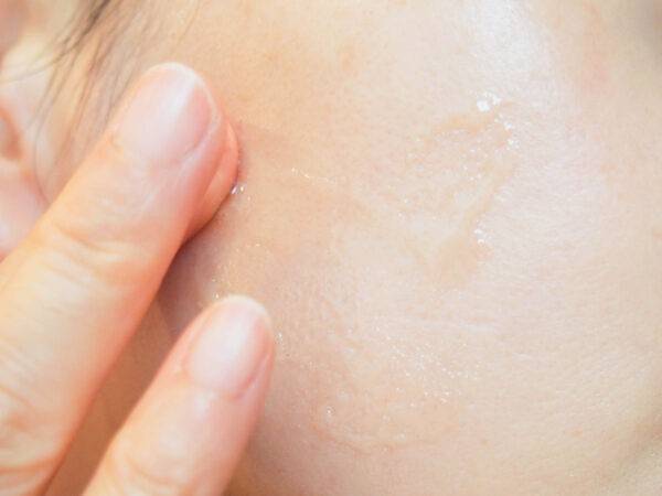미온수로 얼굴을 가볍게 적십니다.
