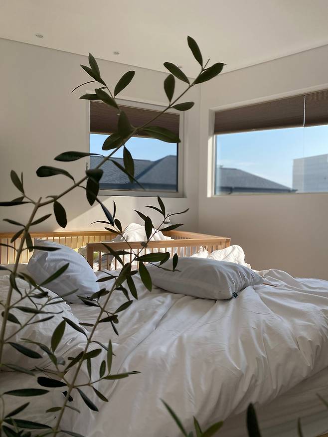 아직은 미완성이라 침대와 아이의 책이 전부인 침실이지만 완성은 2024년 새해의 계획 중 하나입니다. 샤워를 하거나 잠들기 전 떠오르는 생각을 적거나 서치할 수 있는 작은 서재를 함께 꾸밀 예정이에요.