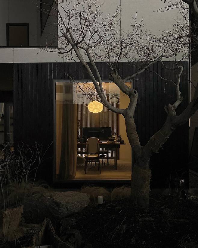 저희 집에는 차 마시는 공간의 차경을 담은 갤러리창으로 볼 수 있는 나무가 있었습니다. 라일락 고목이었는데 조경하시는 분께서 특별히 아끼셨던 구하기 힘든 오래된 라일락 나무를 심어 주셨어요. 수형이 수려하고 보라색 꽃이 피는 모습이 아름답다 못해 황홀했습니다. 향기도 굉장했고요,