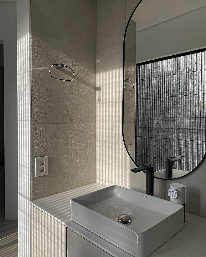 다음으로 보여드릴 공간은 화장실이에요. 심플하고 청소하기 쉬우며 볕이 잘 들고 통풍이 되는 건식 화장실이었으면 해서 1층과 2층 화장실에는 큰 창이 있습니다. 1층은 간단하게 샤워를 할 수 있는 샤워부스와 변기만 있는 두고 파우더 룸을 밖으로 빼서 시공하였습니다.