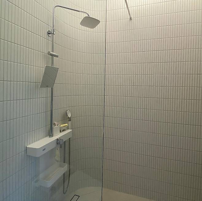 2층은 욕조가 있는데 반신욕을 좋아하는 저를 위한 공간입니다. 큰 창으로 이 반신욕을 하면서 밖의 풍경을 보는 것이 계획이었는데 우리 집을 지을 때만 해도 주변에 집이 없어서 멀리 공원이 보였지만 지금은 우리 집을 바라보게 지은 집의 창이 바로 이층 화장실 창으로 보여서 블라인드를 늘 쳐놓게 되어 아쉽습니다.
