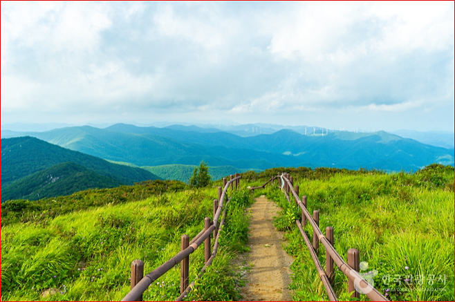 풍경 포인트 : 이른 아침엔 운해가 피어오르며 몽환적인 장관을 이루고, 낮에는 햇살 속에서 붉고 흰 야생화가 억새밭과 어우러져 가을의 정취를 완성합니다.