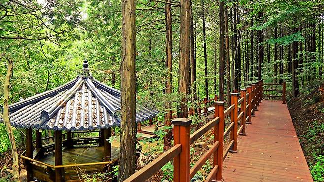 산책로 중간중간 마련된 정자는 누구에게나 반가운 쉼표가 되어준다. 나무 그늘 아래 앉아 숨을 고르고, 숲 내음을 들이마시는 그 순간. 평소와 다른 속도로 흐르는 시간이 찾아온다.