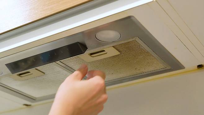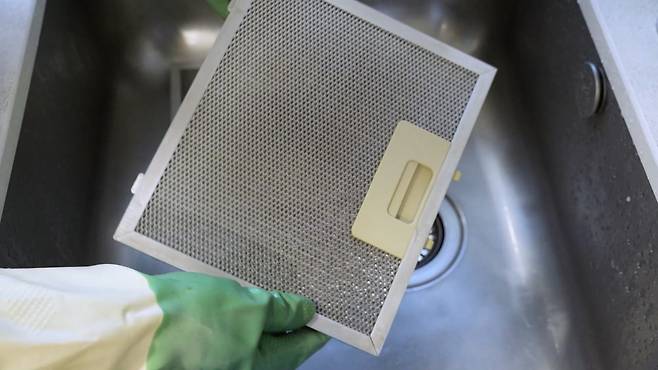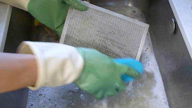 이렇게 주방후드 필터를 모두 제거해 줍니다. 여기까지 하셨다면 벌써 절반은 끝난 것과 다름없어요.
