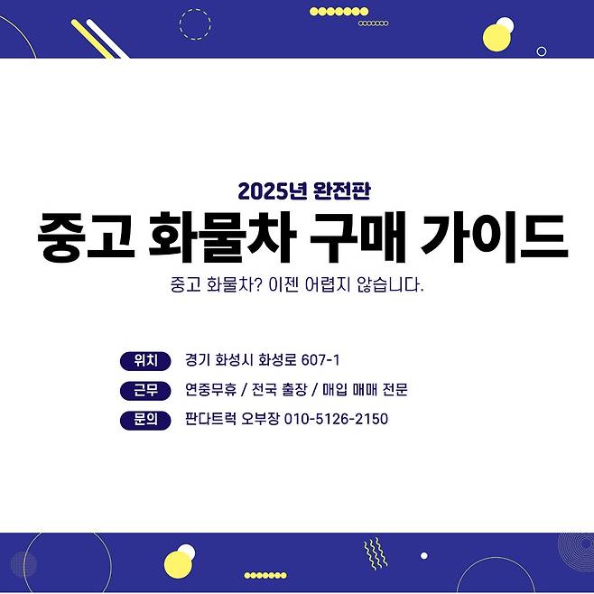 중고 화물차는 제대로 알고 구매하면 비용 대비 효율이 탁월한 선택이다. 하지만 한순간의 방심이 수천만 원의 손실로 이어질 수 있다. 싸다고 덥석 사지 말고, 꼼꼼하게 확인하고 또 확인해야 한다. 전문가의 도움을 받고, 신뢰할 수 있는 경로를 통해 거래하는 게 가장 현명한 방법이다. 화물차는 단순한 차량이 아니라 생계 수단이다. 신중하게 선택하고 안전하게 거래하자.
