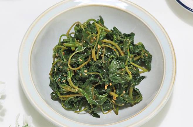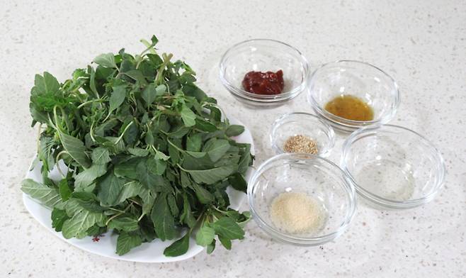 1. 비름나물은 부드러운 가지와 여린 잎의 신선한 부분만 사용하고 굵은 줄기를 다듬어 주세요.