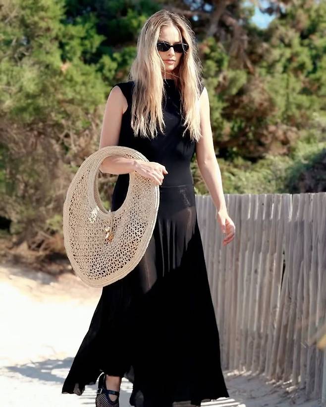 #마고로비 #마고로비패션 #마고로비스타일 #비치고스룩 #휴양지패션 #올블랙코디 #시스루드레스 #라피아백 #알라이아플랫 #스타패션 #헐리우드스타일 #여름코디