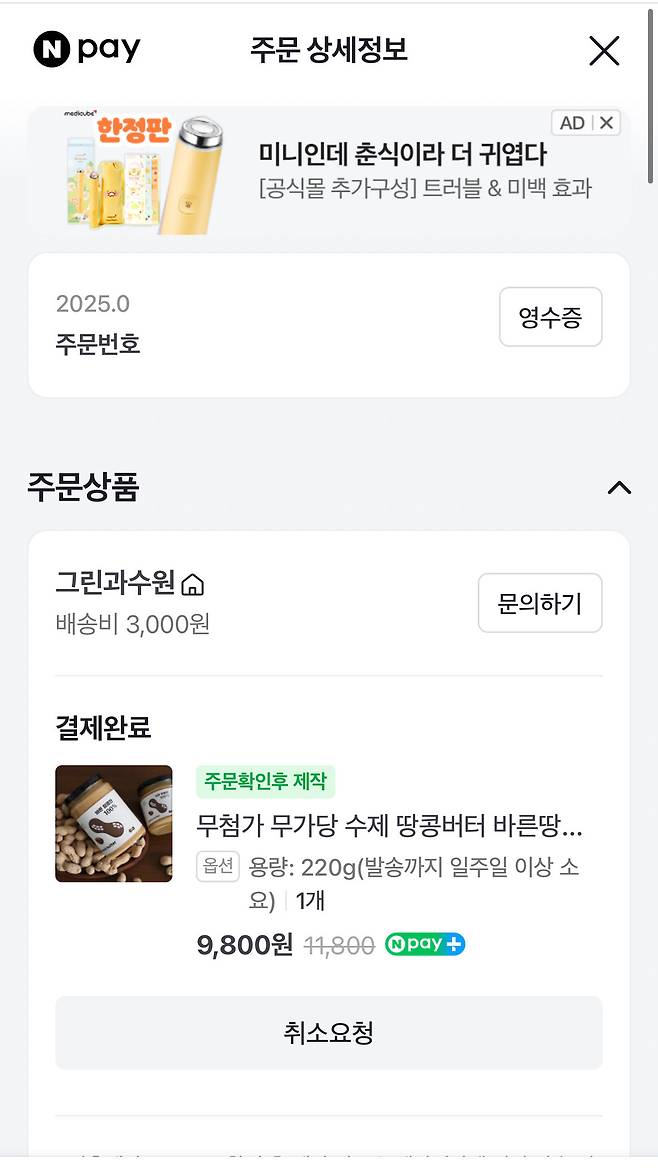 이미지 = 수습 에디터 빤히 네이버페이 구매목록 캡처
