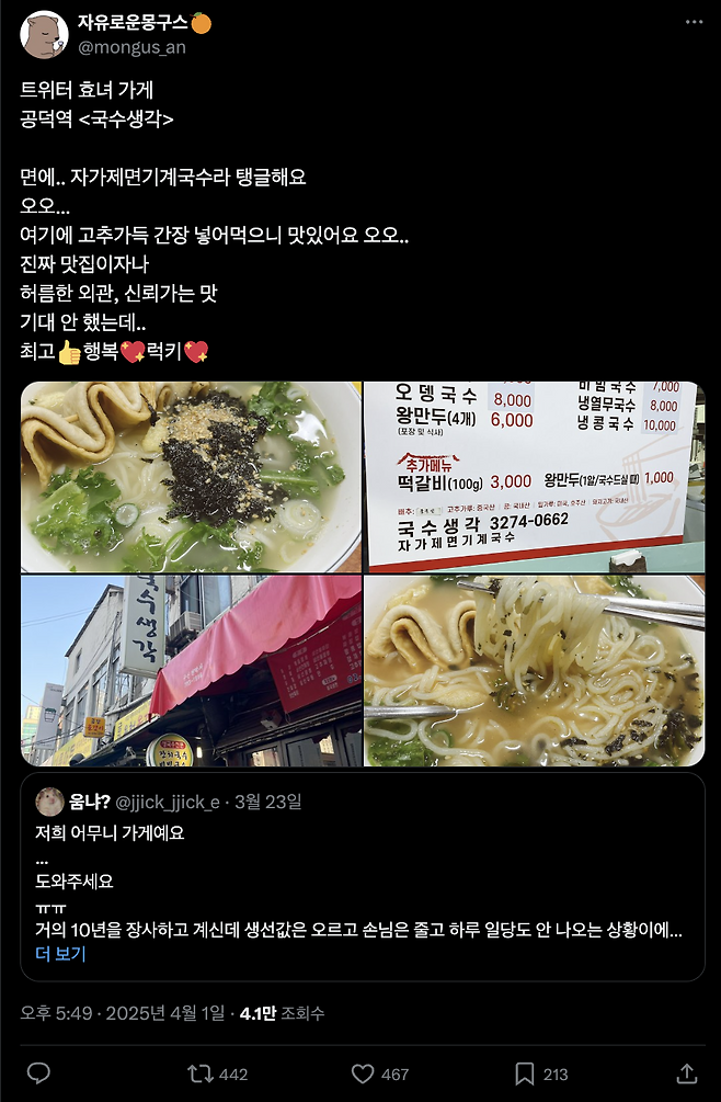 이미지 = X 캡처 (https://x.com/mongus_an/status/1906992333935308962)