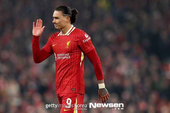 지난 2022년 8,500만 파운드 거액 이적료로 리버풀 유니폼을 입은 누녜스는 '돈값'을 못하는 공격수다. 포르투갈 리그에서 득점왕도 차지했던 선수이지만 골 결정력에 치명적인 결함이 있다. 누녜스는 아르네 슬롯 감독이 부임한 이번 시즌은 주전 자리를 잃었고 리그 23경기(선발 8회) 5골 2도움을 기록 중이다.