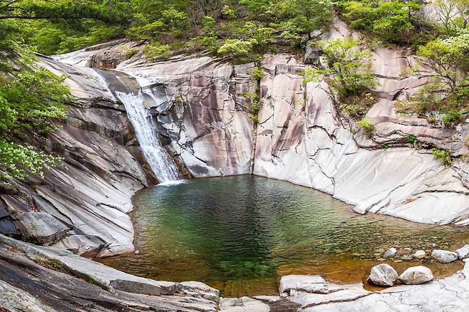 수십만 년 동안 계곡물에 씻긴 백옥 같은 화강석 위로 하얀 포말을 이루며 쏟아지는 계곡물과 주변 자연경관이 아름다워 한국의 명수 100선에 선정되기도 했다.