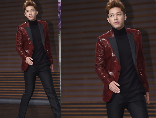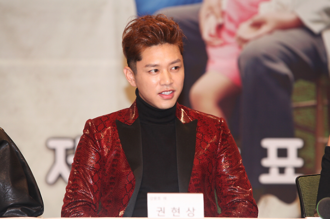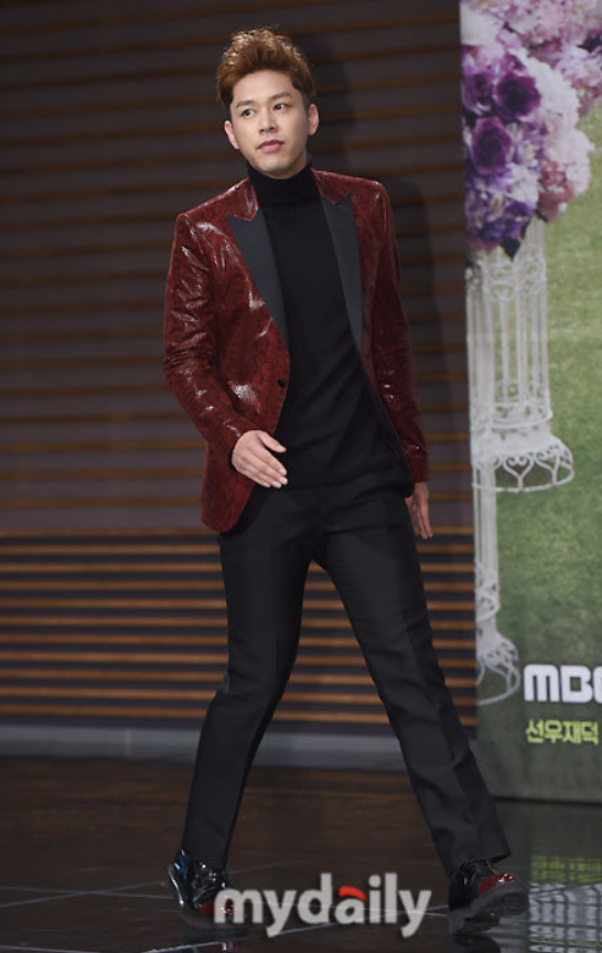 권현상은 약 10년 전, 드라마 <언제나 봄날>의 제작발표회에서 독특하고 눈에 띄는 패션을 선보였습니다. 그는 광택 있는 레드 가죽 자켓을 입고 블랙 목티와 블랙 팬츠를 매치하여, 강렬하면서도 세련된 룩을 완성했죠. 이 조합은 전체적인 룩에 역동적이고 개성 넘치는 분위기를 더하며, 그의 스타일을 한층 돋보이게 했습니다.