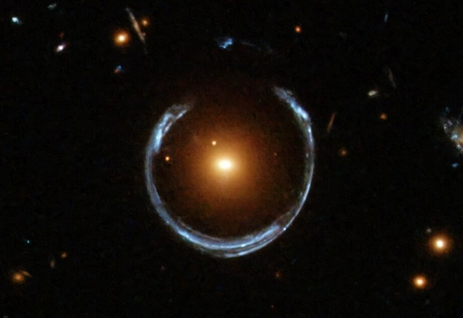 이어 "코스믹 호스슈는 두 은하가 나란히 선 중력렌즈계로, 앞쪽 은하의 질량이 너무 커 뒤쪽 은하의 빛을 왜곡한다"며 "이때 빛이 은하의 주변을 도는 것처럼 진행돼 뒤쪽 천체의 빛이 말발굽 모양을 띤다"고 덧붙였다.