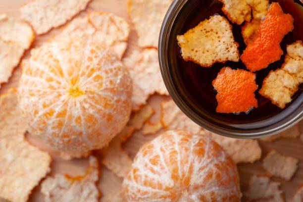 말린 귤껍질을 뜨거운 물에 우려 차로 마셔요.