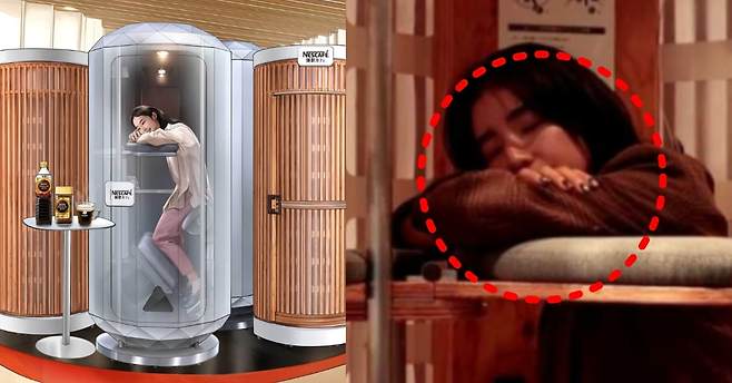 수면 부족에 시달리는 현대인들을 위한 기발한 발명품이 일본 도쿄의 한 카페에 등장해 화제입니다. 잠시나마 꿀잠을 잘 수 있는 '서서 자는 캡슐'입니다.