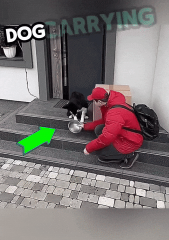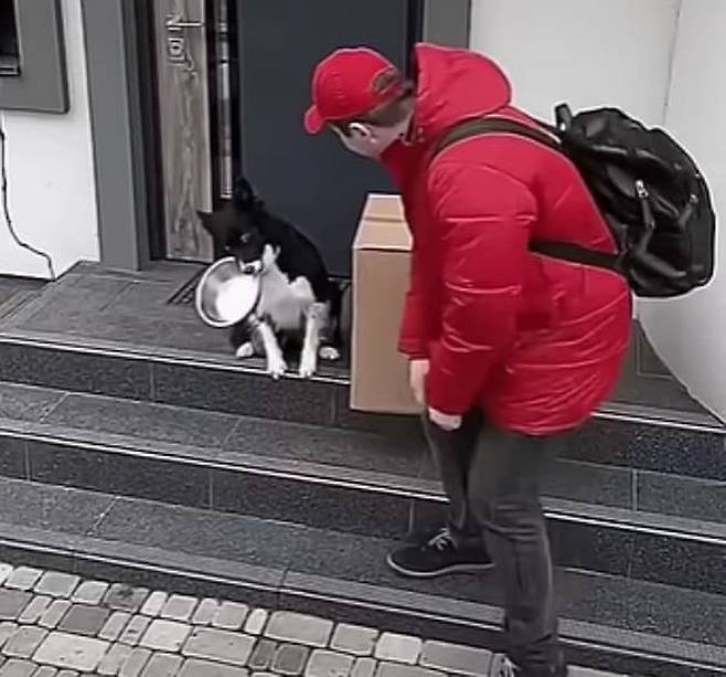 집앞을 서성거리고 있던 보더콜리 강아지는 배달원을 보자 무언가 생각이 난 듯 갑자기 입에 밥그릇을 물고 들이미는 것이 아니겠습니까.