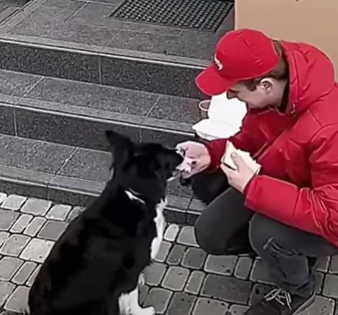 배달원이 내민 샌드위치를 본 보더콜리 강아지는 흥분을 감추지 못했는데요. 그냥 지나칠 수도 있음에도 배고프다고 음식 달라는 녀석을 외면하지 않고 손을 내밀어준 배달원.