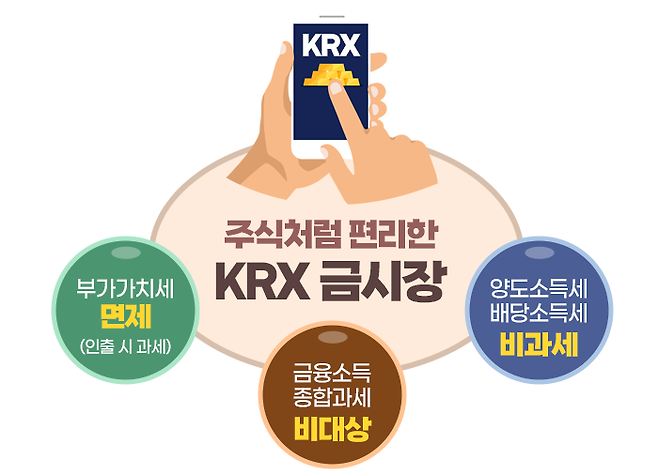 한국거래소(KRX)에 2014년 3월 24일 설립된 KRX 금시장을 통해 금에 투자할 수 있습니다. 주식처럼 편리하게 증권회사를 통해 금을 사고팔 수 있는 구조를 갖고 있으며, 매매차익에 대해서 세금이 없다는 것이 가장 큰 장점입니다.