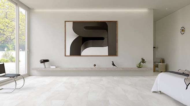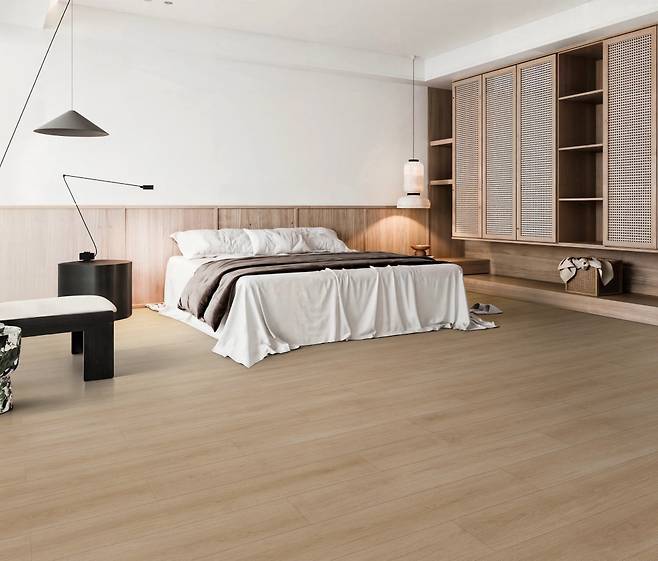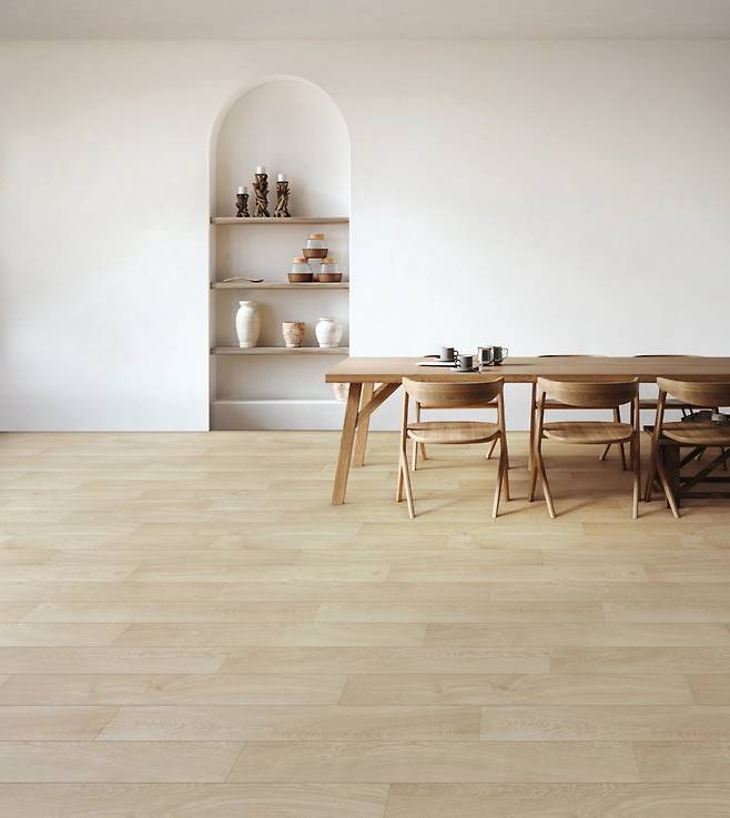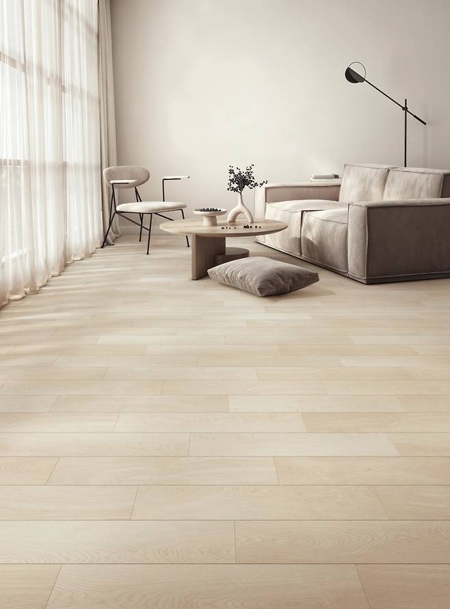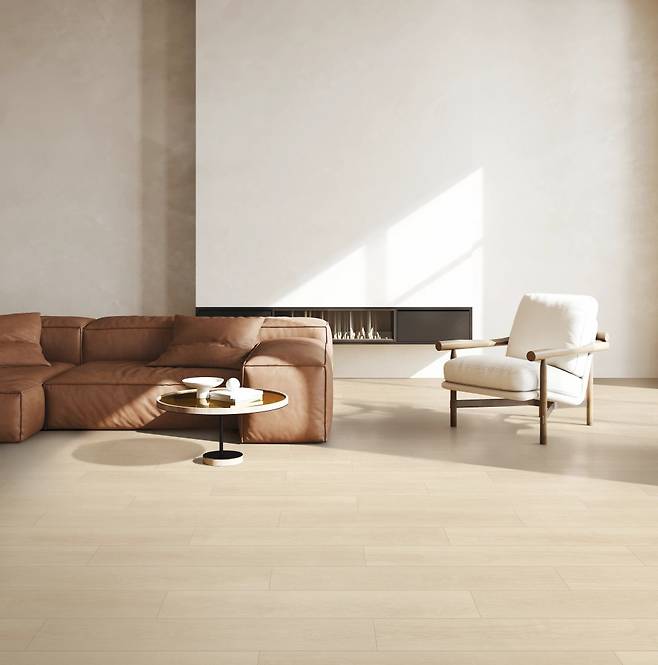 또한 LX Z:IN 바닥재 에디톤 마루는 온돌 난방과 좌식 생활이 보편화된 우리나라 주거 환경과 찰떡궁합이다. 합판이나 나무로 만드는 일반 마루는 높은 습도에서 변색되거나 심하면 곰팡이가 필 수도 있어 위생적으로 좋지 않다. 하지만 에디톤 마루는 천연석과 고분자 수지를 주원료로 자체 개발한 고강도 소재를 적용했다. 덕분에 물에도 강하고, 강마루와 세라믹 타일 대비 손상도 적어서 관리에 용이하다.