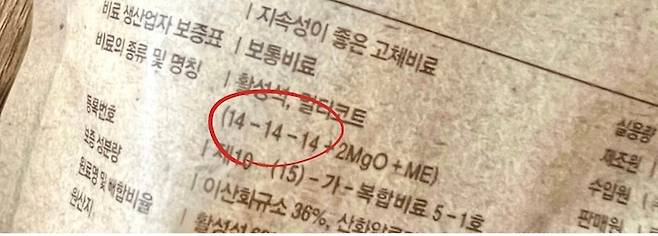보증성분 표기: 질소-인산-칼륨 비율