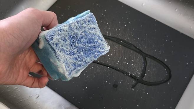 수세미로 살살 문지른 뒤 뜨거운 물로 헹구면 끝!
