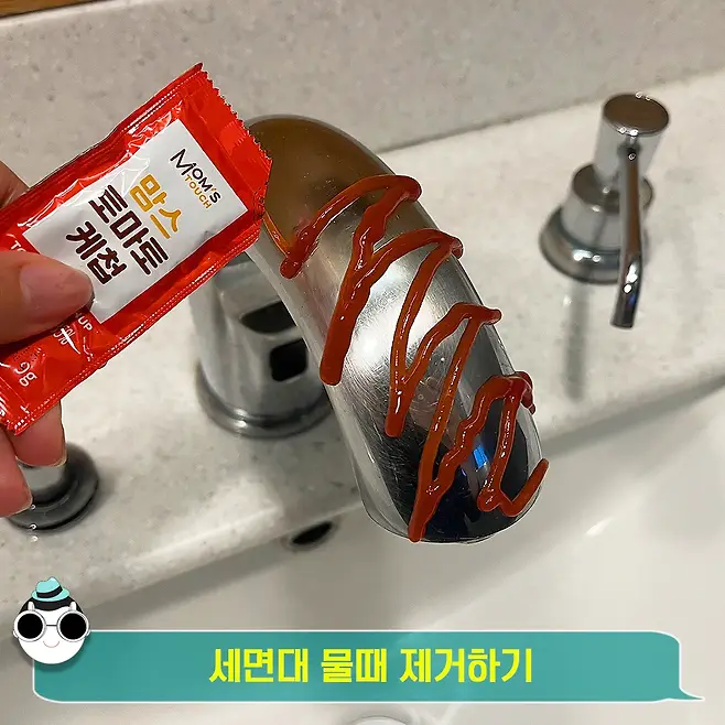 꼴 보기 싫은 세면대 수전을 케첩으로 활용해서 물때 제거와 광택 효과까지 한 번 누려봅시다!