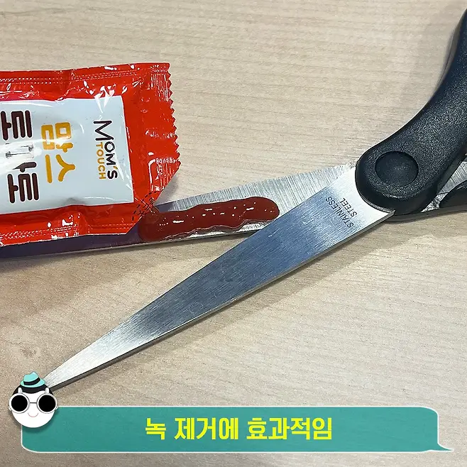 가위나 칼 등등 장시간에 물에 노출될 경우에 녹이 잘 생기는데 안 먹는 케첩으로 쉽게 제거할 수 있다는 거~