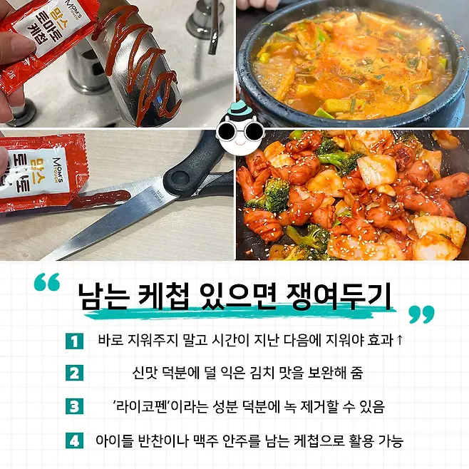 김치찌개를 먹고 싶은데 덜 익은 김치밖에 없을 때 케첩이 더욱 빛을 발할 수 있는데요. 이 케첩을 약간 넣어준다면 덜 익은 김치가 잘 익은 김치찌개 맛으로 변할 수 있답니다.
