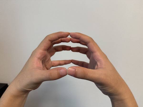 양손을 편 채로 손가락을 서로 마주 보게 세웁니다.