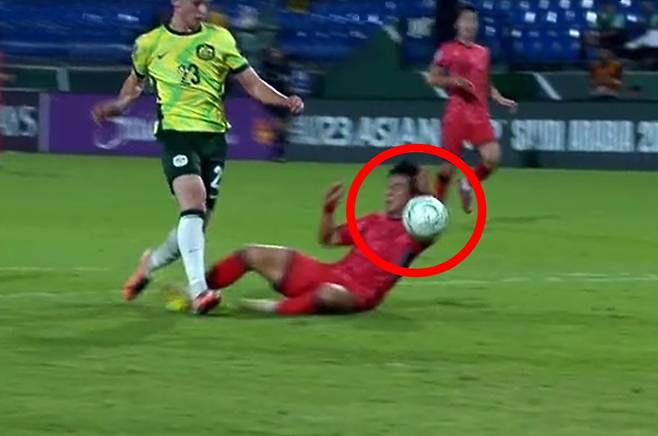 전반 38분 한국의 페널티 박스 안에서 강민준의 손에 공이 닿아 핸드볼 반칙이 선언돼 호주에 페널티킥이 주어졌지만, 비디오판독(VAR) 결과 고의성이 없었다는 결론이 나오면서 호주의 페널티킥은 취소됐다. 판정이 번복되면서 호주는 1-1 동점을 만들 수 있는 기회를 놓쳤다.